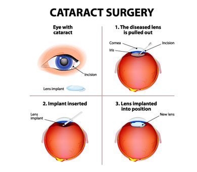 Since Cataract is defined as the clouding of the natural lens in the eye and during Cataract surgery we do remove the cloudy lens. The lens is needed to focus the light on the retina. Most Cataract surgery patients receive an "intraocular lens implant" to replace the natural lens. This acrylic or silicone implant resembles a small contact lens. The doctor inserts it in the front part of the eye during surgery. The implanted lens is a permanent replacement for the natural lens; except in rare cases, it will never be taken out.